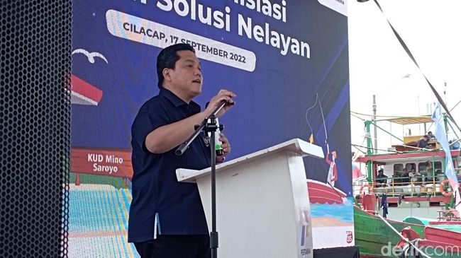 Hari ini, Menteri BUMN Erick Thohir bersama Menkop UKM Teten Masduki meresmikan program Solar untuk Koperasi Nelayan (SOLUSI) di SPBU Nelayan Pelabuhan Perikanan Samudra (PPS) Cilacap. Di sela kegiatan tersebut, Erick sempat ditanya wartawan soal kabar jadi ketua panitia pernikahan Kaesang Pangarep dengan Erina Gudono. Apa jawaban Erick?