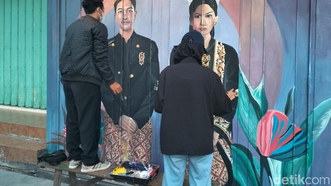 "Ini pas banget dengan tokonya yang jual busana adat Jawa. Kita sekalian ngenalin busana, dan pas banget Mas Kaesang dengan Mbak Erina mau nikah, jadi kami menggambarnya di sini," kata Swatiwi saat ditemui di lokasi, Senin (19/9/2022).