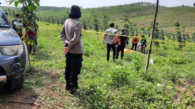 "Sekira pukul 07.00 WIB, saksi (Ibu Ruminem) melintas TKP tepatnya di Jalan Afdeling Banjar Dowo mencium bau bangkai dan sekitar 15 meter dari jalan yang dilalui saksi, saksi melihat sesosok mayat tergeletak di kompleks perkebunan," tuturnya.