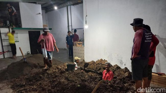 Liang lahat yang disiapkan berada di sebelah barat masjid di areal Ponpes. Saat ini, sejumlah orang tengah menggali liang lahat tersebut.