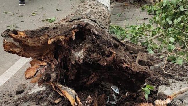 "Pohon sudah rapuh di bagian bawah. Tidak ada yang luka dan selamat semua, langsung dievakuasi sekitar 30 menit," ungkap Arif kepada detikJateng.