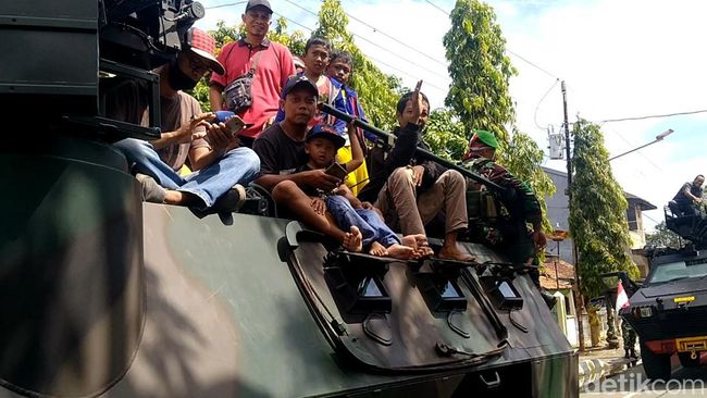 Kehadiran kendaraan taktis TNI Anoa ini dimanfaatkan warga untuk berswafoto. Bahkan, orang tua dan anak-anak diberi kesempatan untuk naik kendaraan buatan Pindad tersebut berkeliling kota.