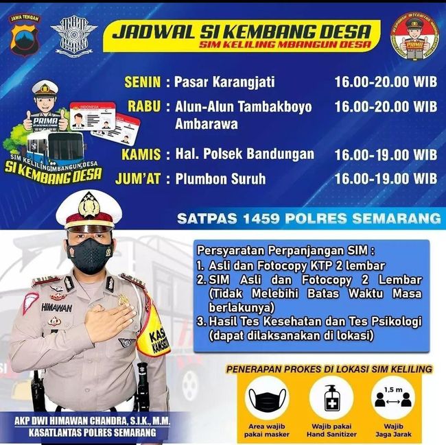 Berikutnya jadwal SIM keliling di Kabupaten Semarang Bulan Oktober 2022 beserta persyaratannya: