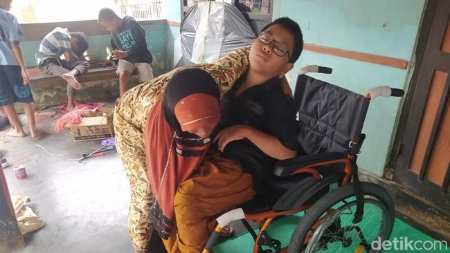 "Karena CP, cerebral palsy. (hambatan jalan) Nggih. Ya biasa guyonan (dengan teman-temannya). Bisanya seperti itu (menunjuk Maman) duduk, merangkak," ujar dia seraya menyebut Maman juga mengalami gangguan penglihatan karena minus 6, itu.