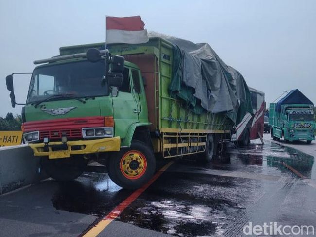 "Kejadian di jalur A, ada truk yang sedang berhenti ditabrak dari belakang oleh bus penumpang," ungkap Uum Jumadi hari ini.