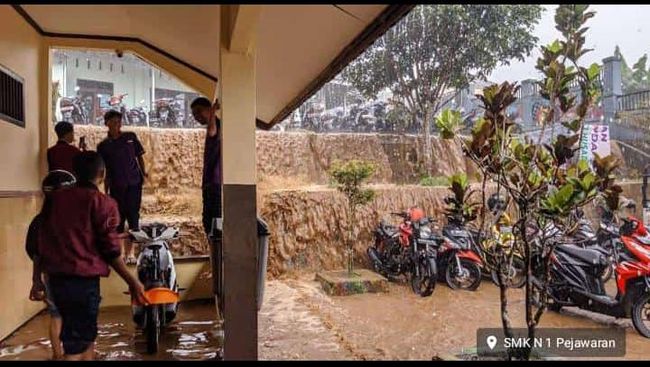Air banjir baru surut sekitar 20 menit kemudian. Indra menyebut, kejadian ini baru pertama kali terjadi di SMK Pejawaran.