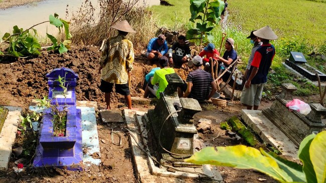 "Hari ini tambah tiga makam yang dipindahkan. Jadi sudah ada 10 makam yang dipindah karena terancam tergerus aliran sungai," kata Kepala Desa Banyakprodo, Pujiyono, Kamis (20/10/2022).