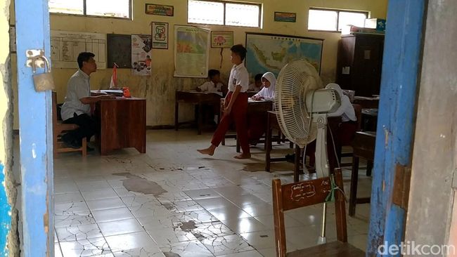"Satu ruang kepala sekolah yang digunakan untuk pembelajaran kelas 1. Kemudian untuk ruang guru sudah saya pindahkan ke ruang perpustakaan, karena ada retakan bangunan yang sampai berlubang dan sampai kelihatan ke depan, sehingga takutnya roboh," sambung Ari.