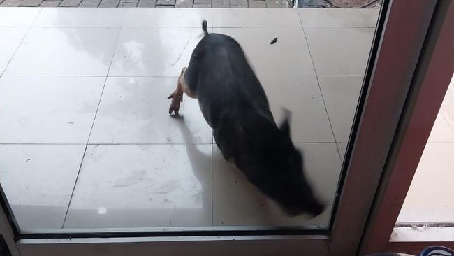 Mengutip detikNews, dalam foto dan rekaman video yang diterima, tampak babi bercorak hitam putih itu berlarian di pekarangan kantor. Tak hanya itu, babi itu juga nyelonong masuk ke bagian dalam ruangan kantor.