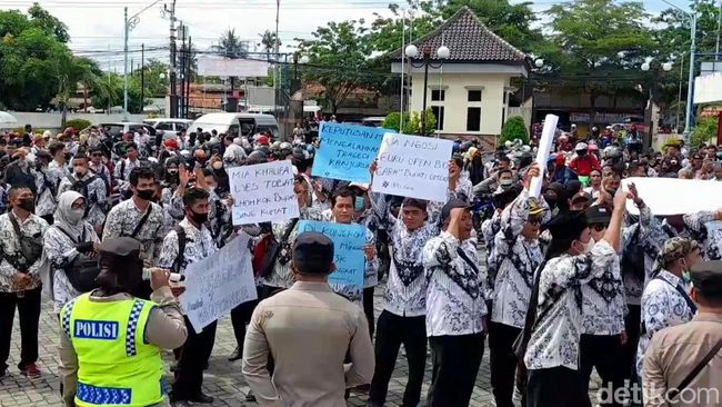 Para guru honorer di Kabupaten Brebes, Jawa Tengah, kembali menggelar aksi unjuk rasa. Mereka mengecam pembatalan formasi PPPK oleh Pemkab Brebes.