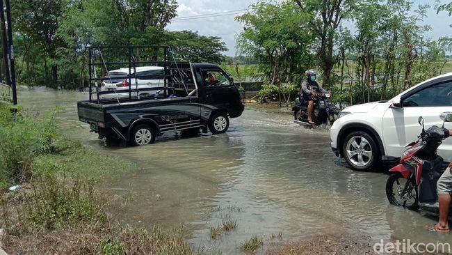 Pantauan detikJateng di lokasi, Sabtu (12/11) pukul 11.30 WIB, banjir di jalan kabupaten itu sejauh sekitar satu kilometer. Genangan banjir mulai dari Desa Sembaturagung sampai Desa Glonggong.