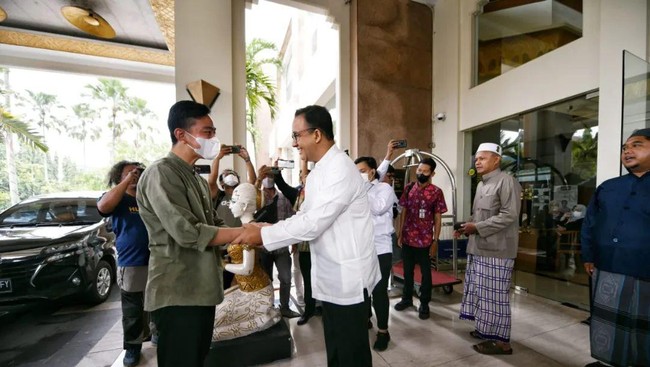Eks Gubernur DKI Jakarta Anies Baswedan dan Wali Kota Solo Gibran Rakabuming Raka sarapan bareng di Solo. Mereka bersilaturahmi dan membahas isu perkotaan.