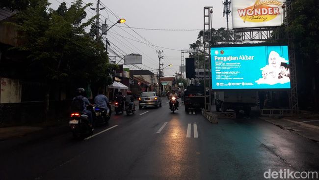 Panggung dan tenda untuk para tamu sudah berdiri di Jalan Dr Rajiman. Panggung pengajian ini memakan separuh badan jalan.