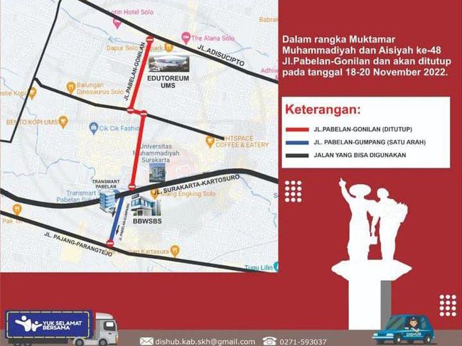 "Selama Muktamar Muhammadiyah ke-48 akan dilakukan Manajemen Rekayasa Lalu Lintas," tulis akun Instagram Dinas Perhubungan Sukoharjo, @dishubsukoharjo, dikutip detikJateng, Rabu (16/11/2022).