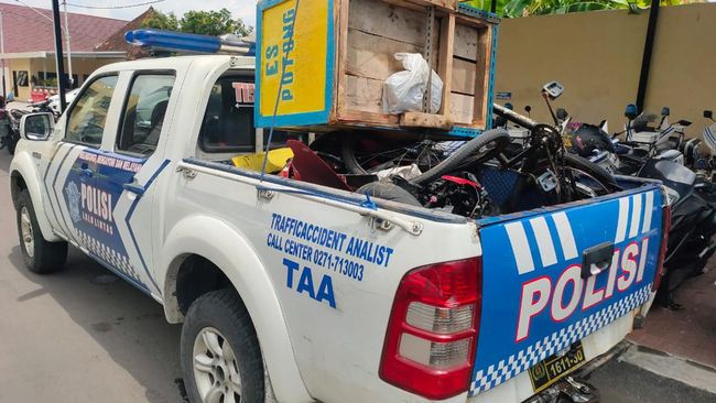 Kecelakaan melibatkan dua mobil, satu sepeda motor, dan gerobak es terjadi di Jalan Slamet Riyadi Solo pagi ini. Saksi menyebut peristiwa itu dipicu kendaraan mobil yang melaju kencang alias ngebut.