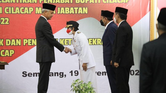 Pelantikan Pj Bupati Cilacap digelar di Gedung Gradhika Bakti Praja kompleks Kantor Gubernur Jawa Tengah. Kepada Yunita, Ganjar mengungkapkan beberapa pesan.