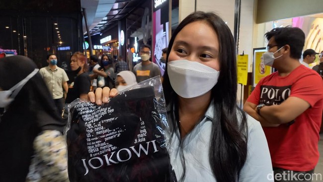 Sesampainya di mobil, Jokowi memberikan kaus kepada masyarakat yang ada di sekitarnya. Salah satu yang beruntung mendapatkan kaus tersebut adalah Vanessa.