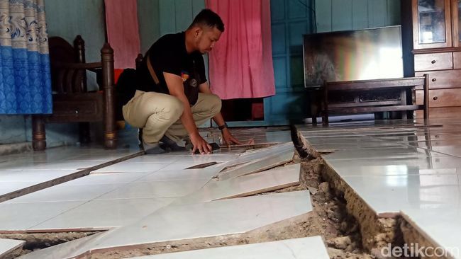 Kerusakan terjadi di bagian dinding rumah dan lantai. Menurutnya saat hujan retakan di lantai dan dinding rumah semakin lebar. Terutama dalam satu pekan terakhir.