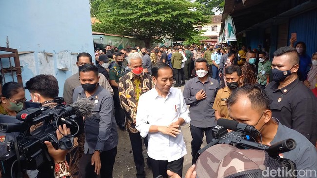 Presiden Joko Widodo (Jokowi) blusukan ke Pasar Tradisional Malangjiwan, Kecamatan Colomadu, Karanganyar. Jokowi datang didampingi Gubernur Jawa Tengah Ganjar Pranowo pagi ini.