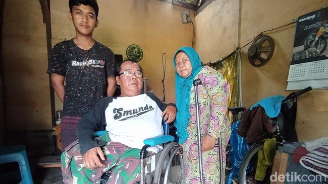 Setiap harinya, Solikhin duduk di atas kursi roda. Sedangkan istrinya, Tunah, memakai kruk karena kaki kirinya tidak berkembang.