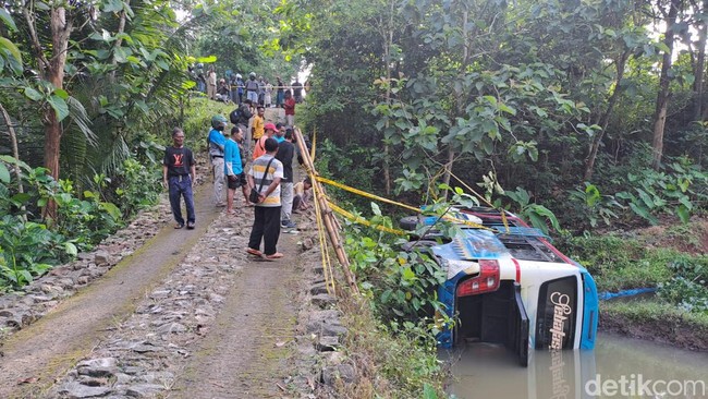"Karena tidak mampu menanjak, pengemudi menarik rem tangan. Karena kondisi jalan cor beton licin, bus berjalan mundur dan tidak terkendali. Kemudian terperosok ke kanan dan masuk ke area persawahan," kata Dydit.