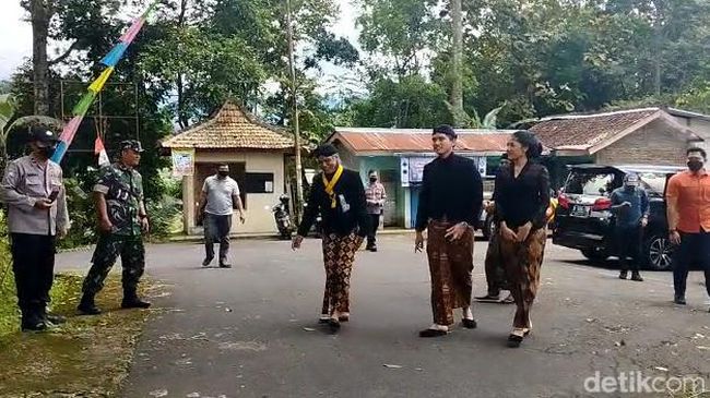 Kaesang nampak menggunakan beskap-jarit, dan Erina menggunakan kebaya brokat warna hitam dengan bawahan jarit. Mereka tiba bersama di Astana Mangadeg Selasa (29/11/2022) sekitar pukul 10.30 WIB.