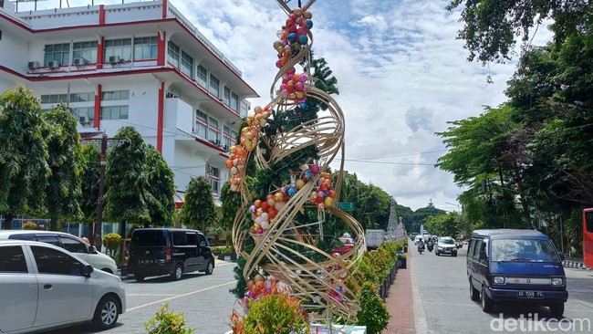Tak hanya di sepanjang Jalan Jendral Sudirman, dekorasi Natal juga nampak di Balai Kota Solo. Sejumlah hiasan Natal tampak terpasang di pohon beringin halaman Balai Kota Solo.