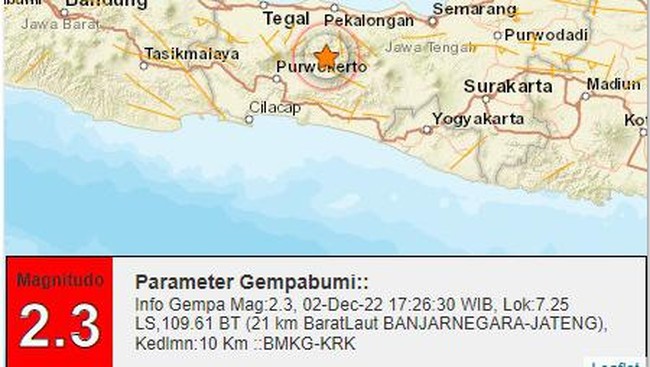 Gempa bumi magnitudo (M) 2,3 terjadi di Kabupaten Banjarnegara, Jawa Tengah. Berikut ini keterangan dari BMKG.