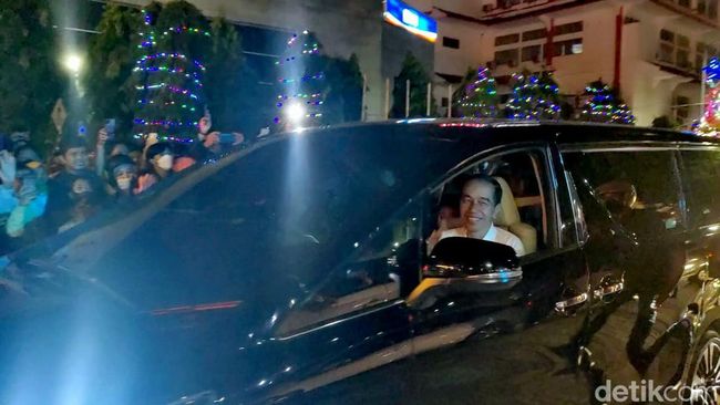 Rombongan Presiden Joko Widodo (Jokowi) sempat terjebak kepadatan di Jalan Slamet Riyadi hingga Jalan Jenderal Sudiman, Solo. Momen itu terjadi saat Jokowi jalan-jalan di Kota Solo, malam ini.