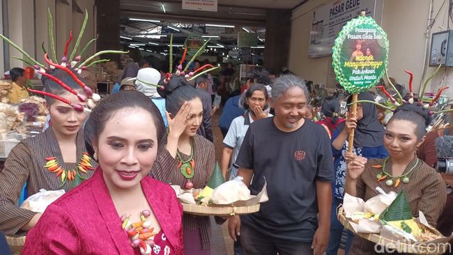 Pantauan detikJateng, Selasa (6/12/2022), seorang seniman melantunkan doa dan tembang di halaman Pasar Gede Solo. Tembang yang dilantunkan adalah pangkur gedong kuning. Tembang itu isinya tentang tolak bala, untuk kebaikan dan mengusir energi-energi negatif.