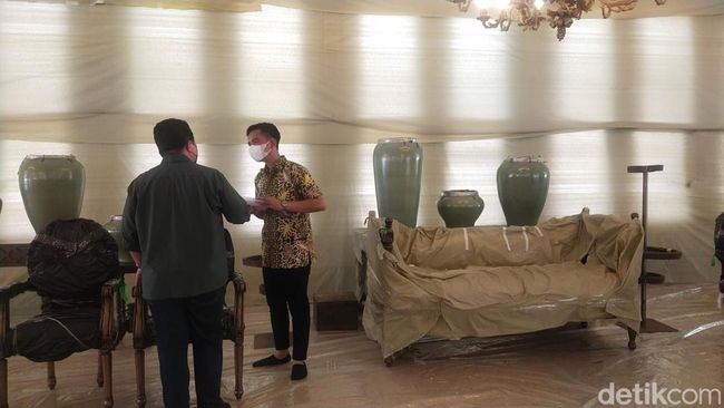 Pantauan detikJateng, sejumlah persiapan masih terus dilakukan di Puro Mangkunegaran jelang tasyakuran pernikahan Kaesang Pangarep dan Erina Sofia Gudono pada Minggu (11/12). Persiapan dilakukan mulai dari pintu depan Puro Mangkunegaran hingga pendopo Mangkungeran.