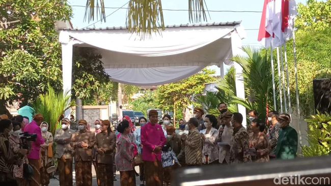Dari pantauan detikJateng, Jumat (9/12/2022) di lokasi, Jokowi bersama Iriana turut didampingi oleh putrinya Kahiyang Ayu dan suaminya Bobby Nasution. Iriana Jokowi mengenakan kebaya kutu baru.