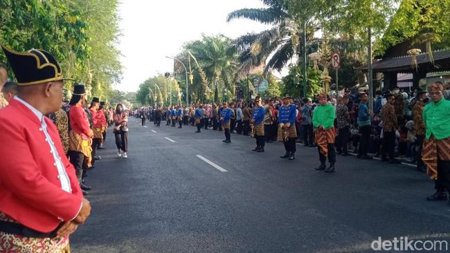 Kaesang Pangarep-Erina Gudono hari ini menggelar kirab ngunduh mantu Presiden Joko Widodo (Jokowi) dari Loji Gandrung menuju Puro Mangkunegaran. Pasukan berseragam prajurit keraton terlihat berjajar ikut mengamankan jalannya kirab.