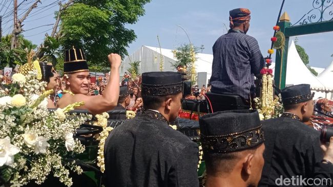 Rombongan kirab tasyakuran pernikahan putra Presiden Jokowi Kaesang Pangarep dan Erina Gudono tiba di Puro Mangkunegaran. Di depan pintu utama, rombongan kirab disambut warga yang berjajar di sepanjang Ngarsopuro sampai Puro Mangkunegaran.
