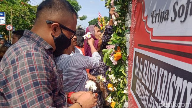 "Ya tidak mungkin bisa masuk bukan undangan, begitu banyak orang. Pilih ambil bunga dibawa pulang, ya untuk kenang-kenangan saja," kata Wahyu Tri sambil membawa beraneka bunga di tangannya.