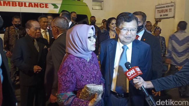 Mantan Wakil Presiden Jusuf Kalla, dan politikus Aburizal Bakrie menghadiri acara tasyakuran putra bungsu Presiden Joko Widodo (Jokowi), Kaesang Pangarep dengan Erina Gudono pada sesi malam, di Puro Mangkunegaran. Usai menghadiri acara itu, Jusuf Kalla memberikan tips pernikahan agar awet kepada kedua mempelai.