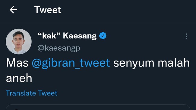 Foto tersebut diposting oleh akun @via***. Kaesang mengomentari postingan tersebut dengan berujar, "Mas @gibran_tweet senyum malah aneh."