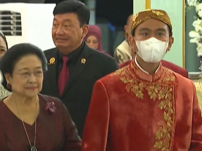 Presiden ke-5 Megawati Soekarnoputri menghadiri acara resepsi pernikahan putra bungsu Joko Widodo (Jokowi), Kaesang Pangarep dan istrinya Erina Gudono. Saat itu ada momen Megawati menggandeng Wali Kota Solo sekaligus putra Jokowi, Gibran Rakabuming Raka.