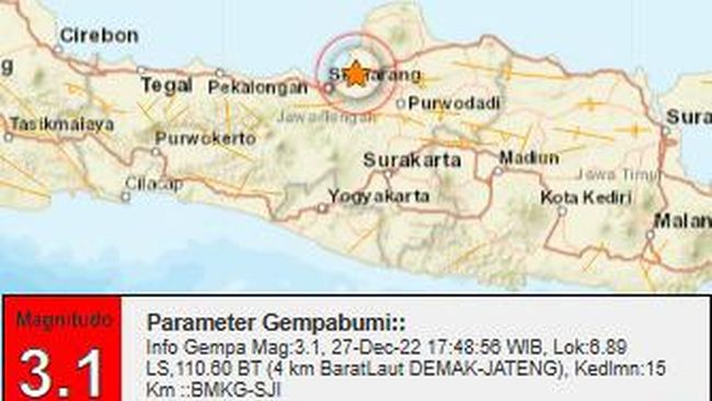 "Info Gempa Mag:3.1 SR," tulis BMKG dalam keterangannya, Selasa (27/12/2022).