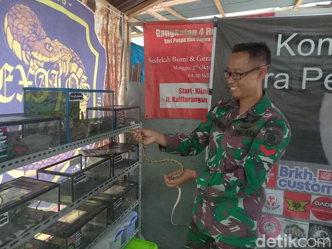 "Sebelum saya masuk tentara, saya belum suka ular. Saya berdinas tahun 2005, saat itu saya bertugas di luar Pulau Jawa, seperti Aceh, Papua, Kalimantan. Di mana pun saya bertugas, saya pasti memelihara ular," kata ayah tiga anak itu saat ditemui di rumah dinasnya di Brigif 6, Jumat (30/12/2022).