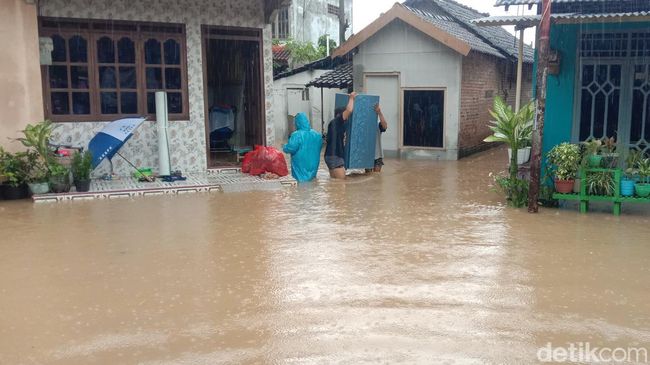 "Banjir di sini sejak empat hari lalu, ini hujan terus ketinggian air mulai naik, di rumah itu sampai 50 sentimeter," kata Yati kepada detikJateng ditemui di lokasi, Minggu (1/1).