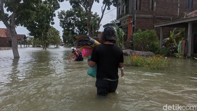 Ia menyebut ketinggian banjir semakin tinggi di wilayah barat Desa Prampelan. "Semakin ke barat semakin tinggi. (Banjir di) Jalan hampir 2 meteran," terang Mastur.