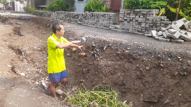 Amblesnya jalan itu terjadi usai Semarang diguyur hujan deras pada malam pergantian tahun kemarin. Setidaknya ada tiga rumah yang terdampak karena jalan ambles itu tepat berada di depannya.