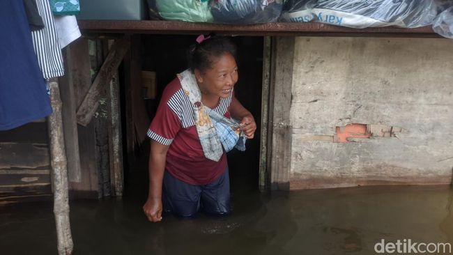 Pantauan di lokasi pukul 15.30 WIB, Rabu (4/1/2023), banjir di RT 03 RW 02 berkisar antara 30-80 cm. Beberapa warga yang emoh mengungsi memilih bertahan di rumah dengan membuat panggung.