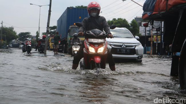 "Ini antre karena di depan ada genangan banjir, cukup tinggi di sana," terang Hendra di lokasi.
