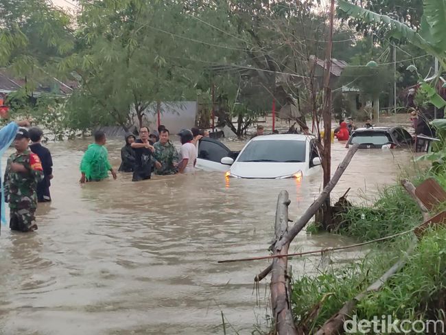Pantauan detikJateng pukul 17.00 WIB, air masih menggenang cukup tinggi hingga dada orang dewasa. Warga yang menyelamatkan diri ke atap rumah dievakuasi oleh tim gabungan.