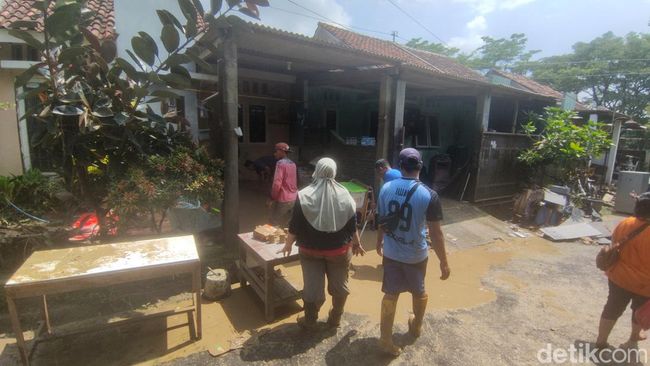 Salah satu rumah yang yang paling dekat dengan tanggul jebol milik Bambang Sujarwo. Di rumah Bambang, tampak penuh lumpur dan barang di dalamnya porak poranda.