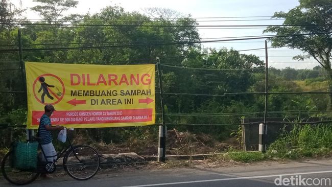 Di lokasi terpasang jaring dan poster ancaman. "Dilarang membuang sampah di area ini, Perdes Kuncen nomor 03 tahun 2023, sanksi denda Rp 500.000 bagi yang membuang sampah di area ini," bunyi poster, sebagaimana dikutip detikJateng.