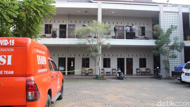 Berdasarkan pantauan di lokasi, Selasa (17/1/2023) terdapat beberapa mobil dan sepeda motor parkir di halaman hotel. Terdapat juga mobil polisi warna orange tertulis tim tindak COVID-19.