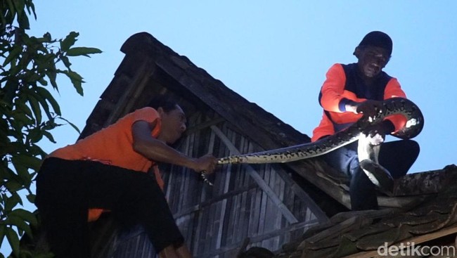Anggota TRC harus naik ke atap dan membongkar sebagian genteng. Ular piton akhirnya bisa ditangkap.